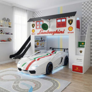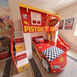 ¿Tu Peque ama la velocidad? Transforma su cuarto en la pista de carreras más divertida con nuestros garajes y autos personalizados.