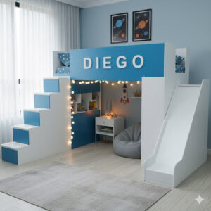 La solución perfecta para hermanos o pijamadas inolvidables. Ahorra espacio con estilo y dales a tus Peques una estructura segura para escalar y soñar juntos.