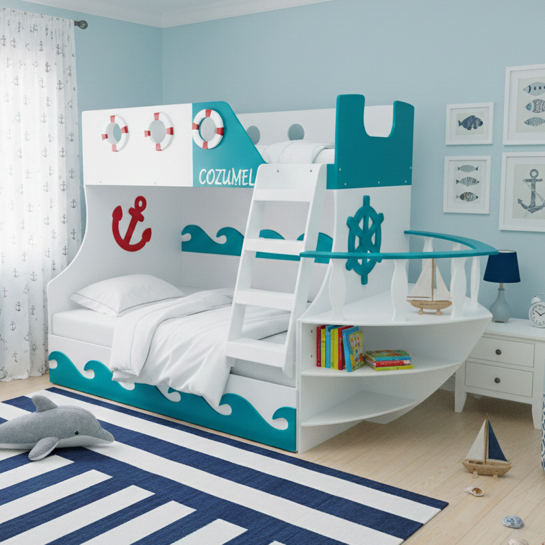 La Litera Barco transforma la habitación en un mundo de aventuras, donde dormir se convierte en una travesía divertida y mágica.