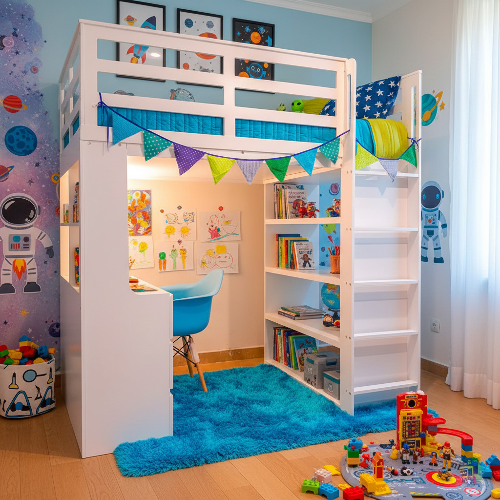 Litera preferida de los Peques… Es la única literatura que es reutilizable y se separa a los años con módulos independientes, la cual puedes utilizar de forma individual. Cuenta con zona de estudio, será un lugar más usado por los Peques, amplio con librero juguetes y escritorio 3 cajones. En tan solo dos metros de ancho por un metro, altura a diseño. Tonos y temas personalizados al gusto de cada Peque.